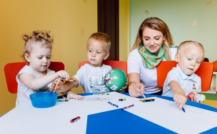 Группы до 6 человек. Группы формируются по возрастному принципу. Разница в возрасте детей в группе – до года. Мини-группы по 6 детей - это дружеская атмосфера, создающая положительную мотивацию.