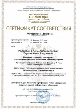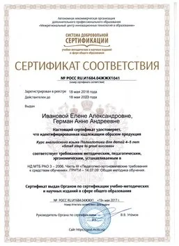 Все наши программы проходят сертификацию соответствия методическим, педагогическим и эргономическим требованиям: