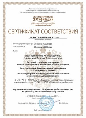 Занятия скорочтением помогают | Сертификат соответствия | Записаться на занятия