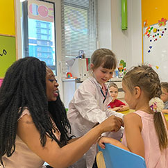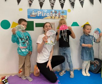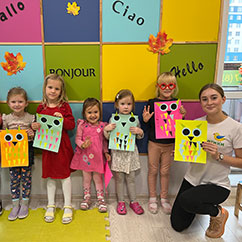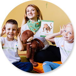 Преподаватель курса общается с детьми исключительно на английским языке, чтобы малыши полностью погрузились в среду.