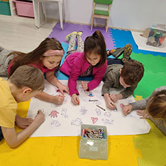 Занятия английским языком проходят в игровой форме и по коммуникативной методике. Дети играют – в ролевые, настольные, развивающие игры, поют, мастерят и рисуют, проявляя свой творческий потенциал и все это на английском языке! Ребятам нравится у нас и они бегут на занятия с удовольствием!