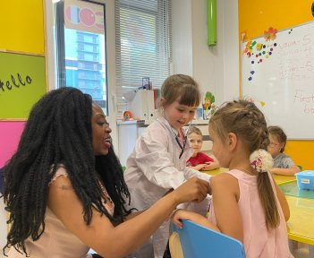 Трехчасовое погружение в англоязычную среду! Это не просто сад – это школа получения навыков посредством языка. Ребята на английском языке изучают математику, музыку, науку, занимаются творчеством по сертифицированным авторским программам Полиглотиков. А начинается садик с фитнесса на английском. Идет всестороннее развитие малышей.